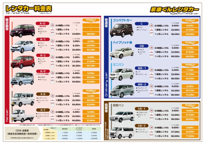 ★レンタカー料金改定のお知らせ【2026年1月より】 | お知らせ・キャンペーン情報 / 家康くんレンタカー